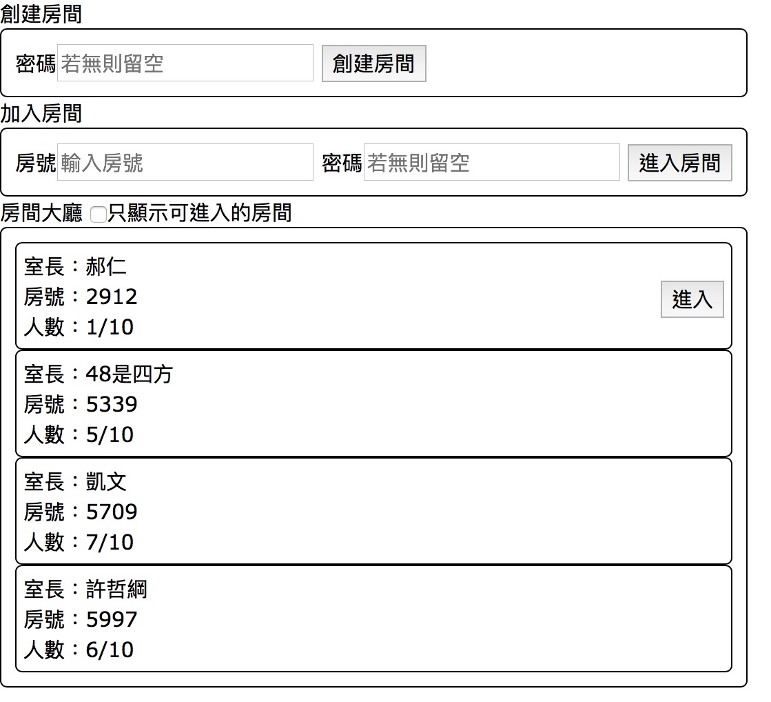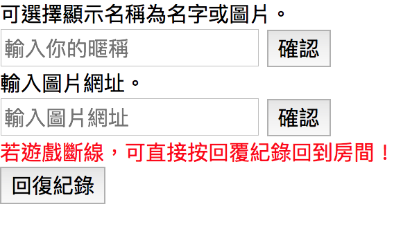 輸入好暱稱後進入遊戲大廳,若遊戲進行到一半斷線,點擊回覆紀錄可以回到進行中的遊戲。