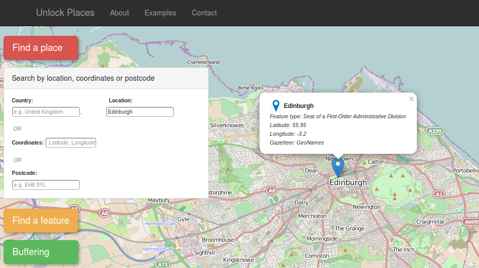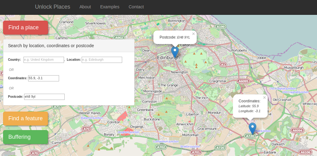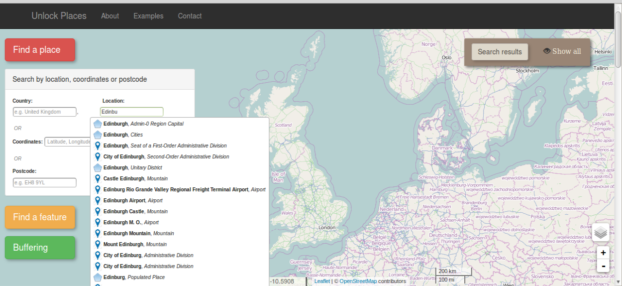 Example 1: Search a place by location, coordinates or postcode