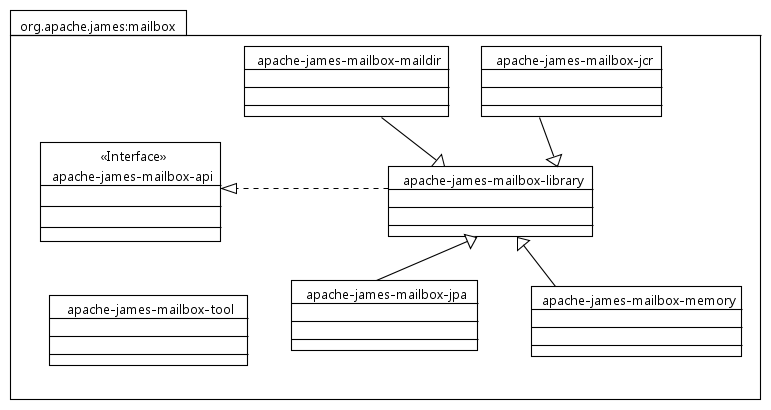 Apache James Mailbox is tested and fully compatible with other Apache James libraries such as the Apache James IMAP (see this link for the Mailbox/IMAP integration tests source code)