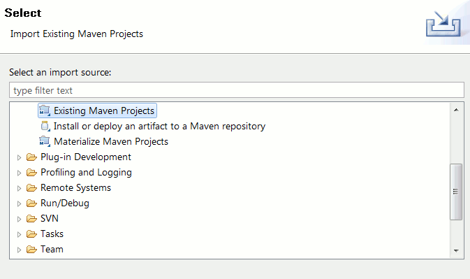 Therefore, click on the File menu and select Import. Choose Existing Maven Project and click on Next button.