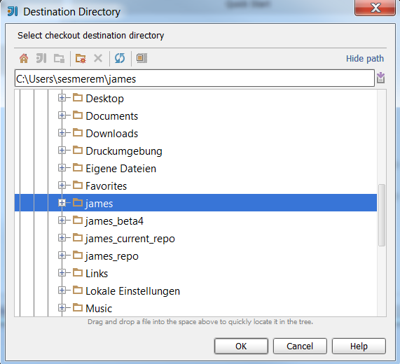 After this you will be presented with another dialog window where you can configure which folders to check out and where to save them on your machine.