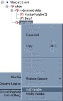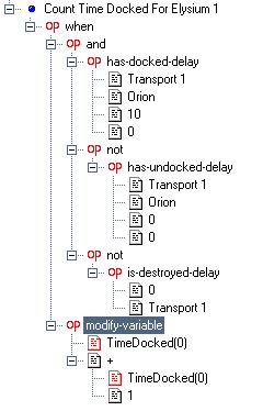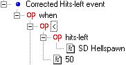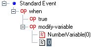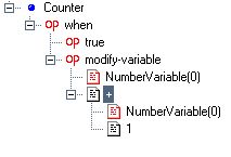 The simplest and most common use for a variable is for counting the number of times something happens. This is done by making an event that says when something happens look at the number in the box, add one to that number, put that new value in the box. The SEXP to do that looks like this.