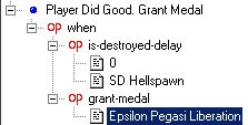 goal invalid. The game will now ignore it. It's worth noting that bonus goals can also be invalid too. You could have a Destroy Cain bonus which only becomes valid once the Moloch and Demon have been destroyed or have departed. In that way you get a bonus if you destroy all three but get shouted at if you ignore the Moloch in favour of the Cain. Voice EffectsHow can I make voice effects? There are two main programs used by the FreeSpace community. Goldwave and CoolEdit The programs are fairly easy to learn how to use. Goldwave is shareware but it will only start to nag you after 100 operations which should be enough to allow you to make a few voices. How can I make Vasudan effects? Goldwave has a rather cool mechanise special effect that is pretty close to the one used in the game. Medals And PromotionHow do I give out a medal? Medals are given out by the special grant-medal SEXP. Don't