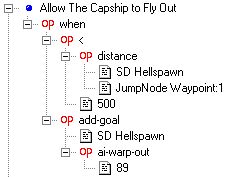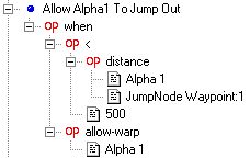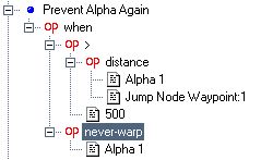 If you're trying to stop Alpha 1 or a ship that Alpha can order to jump out requires a little more work. First you need to prevent the ship(s) from being able to jump out. Then you need to make it so that the ship can only jump out within a certain distance of the node.