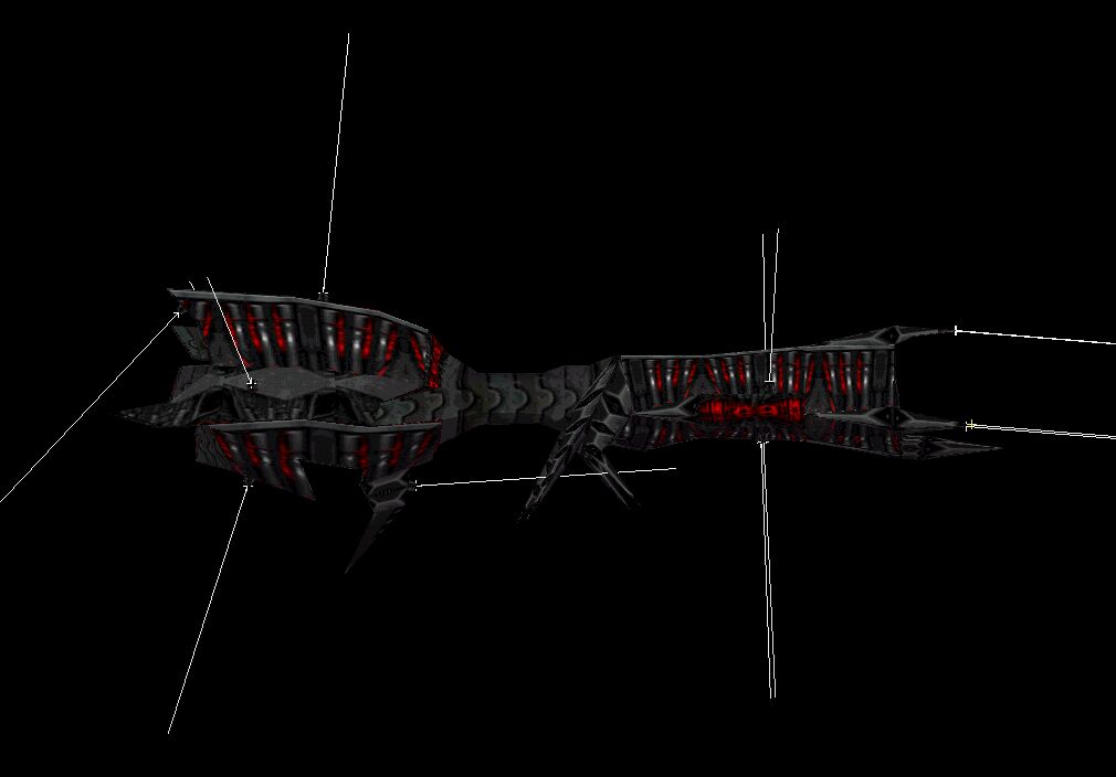 I used the Rakshasa because one of its normals is not particularly well done. All the normals point away from the ship apart from the one on turret 9 (the one at the bottom of the ship in the middle of the picture). As you can see turret 9 actually points towards the ship. Due to this the field of view of turret 9 is limited to 90 degrees. However if the normal pointed down and to the left rather than simply to the left and up a bit the field of view could be increased without the ship risking hitting itself. Normals are also used in several other areas of pof editing so you will need to get the hang of them.