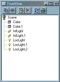 You run TrueView by clicking on the extensions icon, locating trueview.tsx (it usually lives in the True space\TSX\TrueView folder) and then clicking on the new TrueView icon that will appear in True space. Once you've done that you'll be presented with a menu that looks something like the one on the left below.