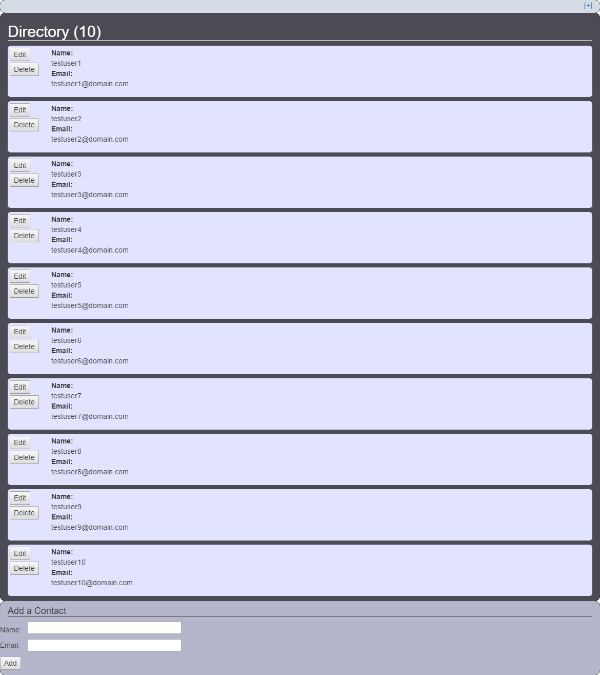 A "simple" contacts directory app. Using AJAX calls to a REST api served by an expressjs server / mongoDB database.