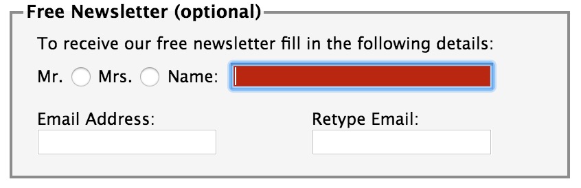 Notice that that radio button labels are not with the buttons. (This is because the page uses layout tables incorrectly.)