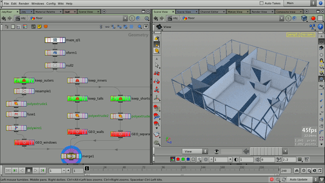 Construction of a simple procedural office floor, with Maze qL SOP providing the floor plan and other details (e.g. inside wall heights are based on wall recursion levels).